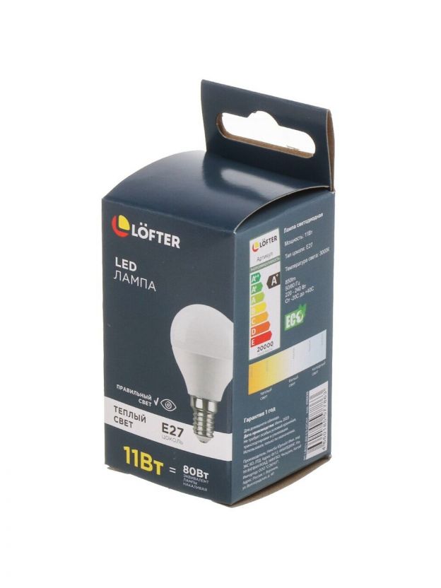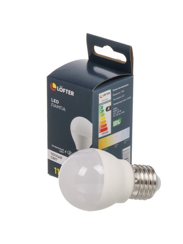 Лампа светодиодная E27, 11 Вт, 80 Вт, 220 В, шар, 3000 К, теплый белый свет, Lofter