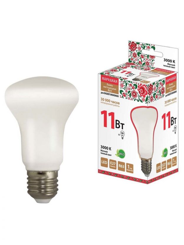 Лампа светодиодная E27, 11 Вт, 90 Вт, рефлектор, 3000 К, теплый белый свет, TDM Electric, Народная, SQ0340-0142