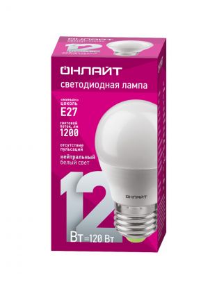 Лампа светодиодная E27, 12 Вт, 120 Вт, шар, 4000 К, нейтральный белый свет, Онлайт, 90064
