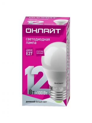 Лампа светодиодная E27, 12 Вт, 120 Вт, шар, 6500 К, холодный белый свет, Онлайт, 90065