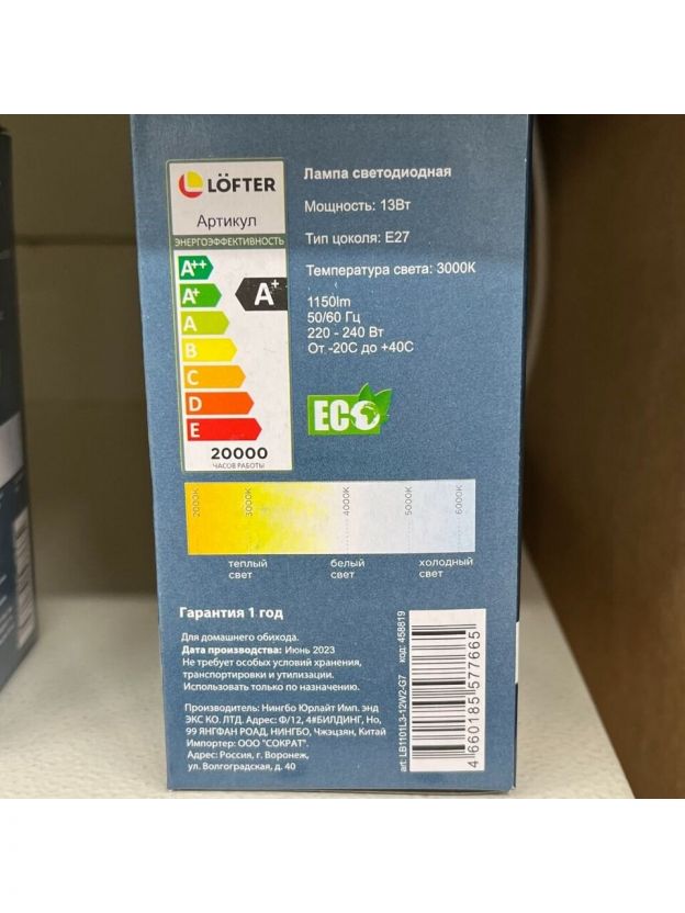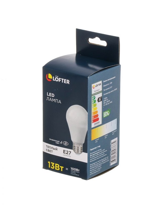 Лампа светодиодная E27, 13 Вт, 100 Вт, 220 В, груша, 3000 К, теплый белый свет, Lofter