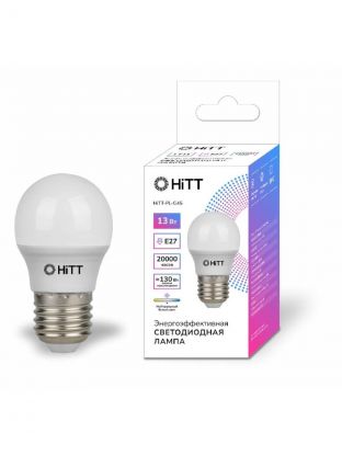 Лампа светодиодная E27, 13 Вт, 230 В, груша, 4000 К, нейтральный белый свет, HiTT, HiTT-PL-G45, G45, 1010050