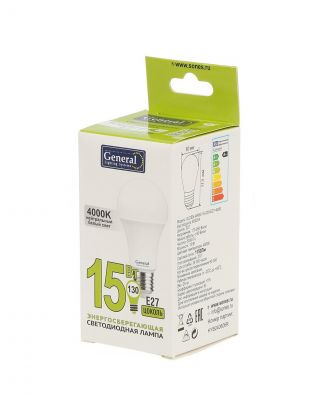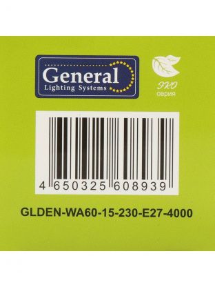 Лампа светодиодная E27, 15 Вт, 230 В, груша, 4000 К, нейтральный белый свет, General Lighting Systems, GLDEN, 662204