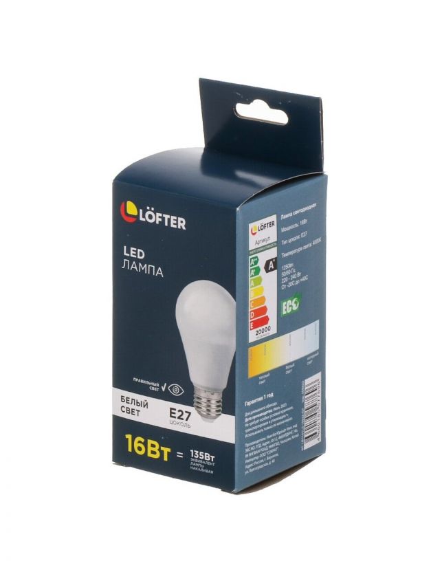 Лампа светодиодная E27, 16 Вт, 135 Вт, 220 В, груша, 4000 К, нейтральный белый свет, Lofter
