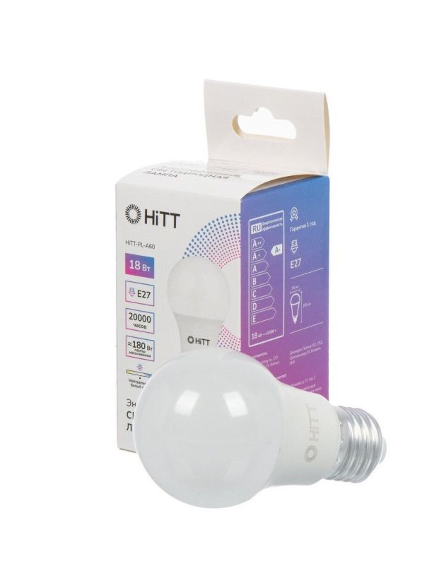 Лампа светодиодная E27, 18 Вт, 180 Вт, 220 В, груша, 3000 К, теплый белый свет, HiTT, HiTT-PL-A60, A60, 1010007