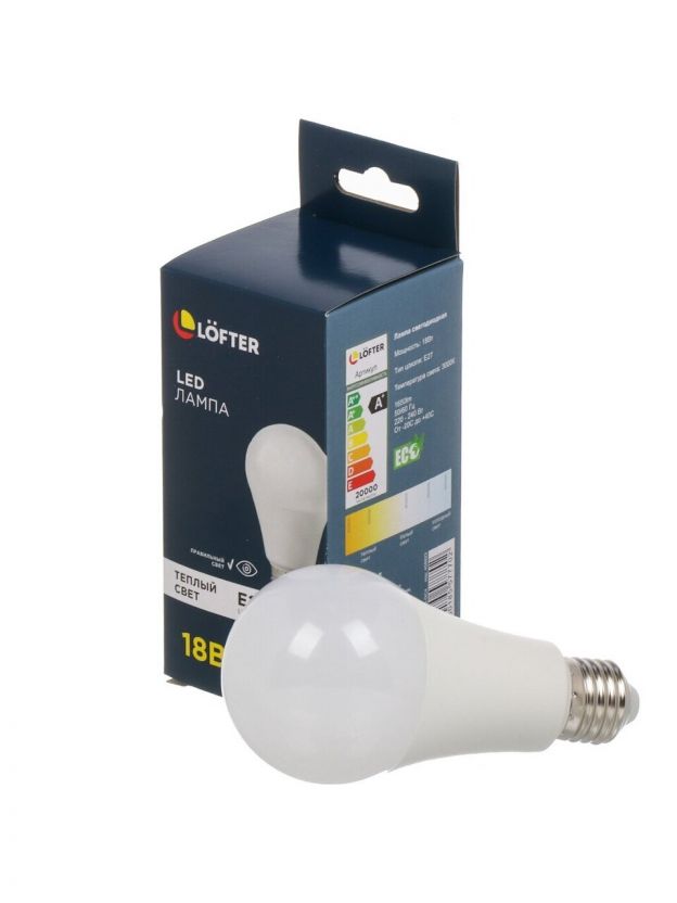 Лампа светодиодная E27, 18 Вт, 180 Вт, 220 В, груша, 3000 К, теплый белый свет, Lofter