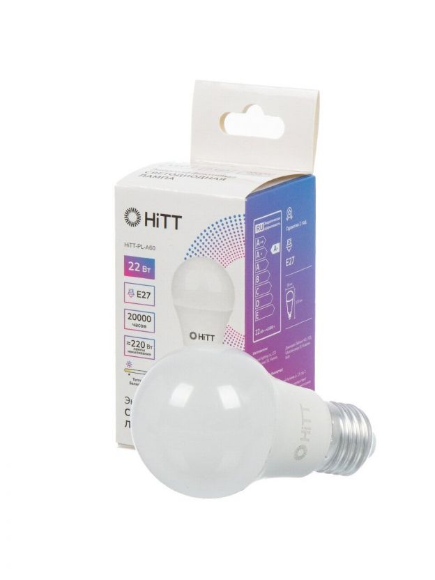 Лампа светодиодная E27, 22 Вт, 220 Вт, 230 В, груша, 3000 К, теплый белый свет, HiTT, HiTT-PL-A60, A60, 1010010