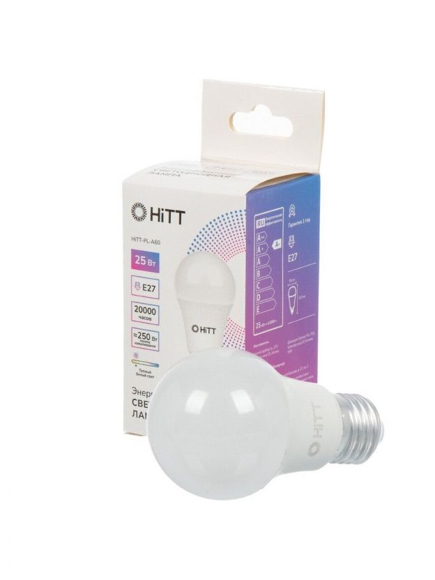 Лампа светодиодная E27, 25 Вт, 250 Вт, 230 В, груша, 3000 К, теплый белый свет, HiTT, HiTT-PL-A60, A60, 1010013