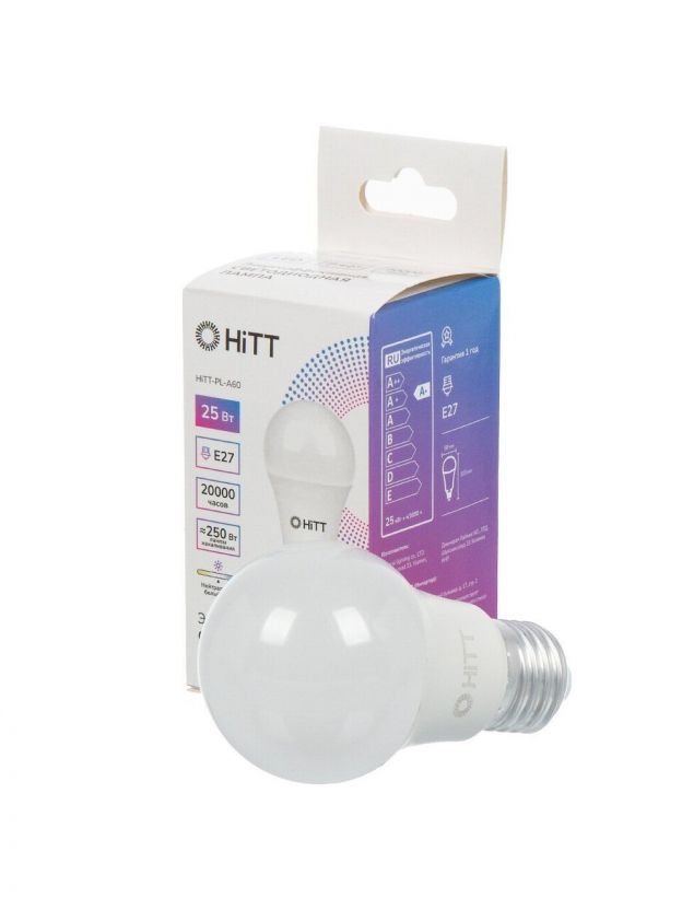 Лампа светодиодная E27, 25 Вт, 250 Вт, 230 В, груша, 4000 К, нейтральный белый свет, HiTT, HiTT-PL-A60, A60, 1010014