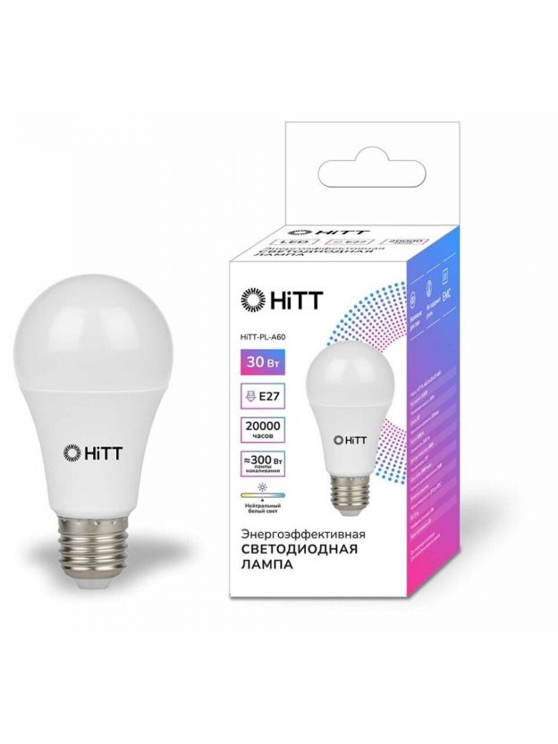 Лампа светодиодная E27, 27 Вт, 230 В, груша, 3000 К, теплый белый свет, HiTT, HiTT-PL-A60, A60, 1010016
