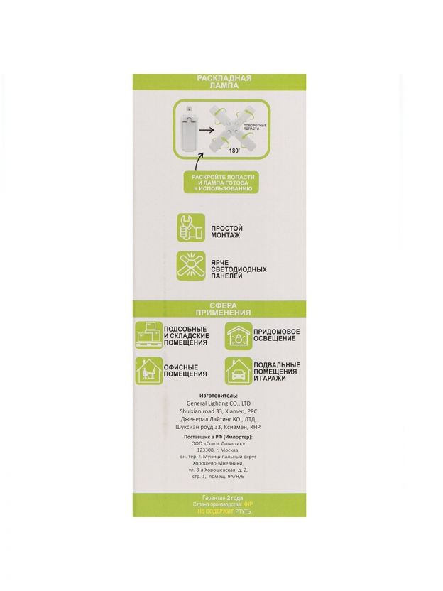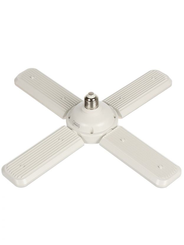• Раскладная конструкция с 4 лопастями — равномерное распределение света, подходит для высоких потолков и больших площадей