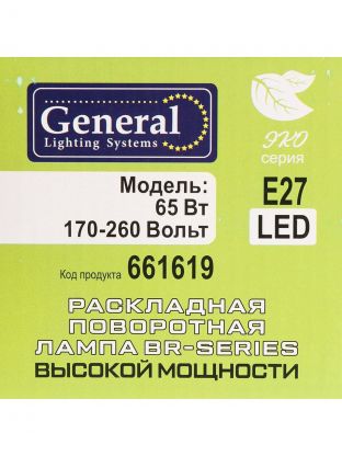 Лампа светодиодная E27, 65 Вт, 230 В, 4000 К, холодный белый свет, General Lighting Systems, GLDEN-HPBR-6, раскладная 4 лопасти, 661619