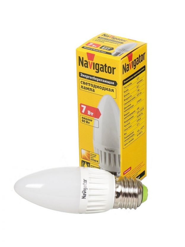 Navigator NLL-C - светодиодная энергосберегающая лампа общего и декоративного освещения. Колба лампы выполнена в форме свечи.