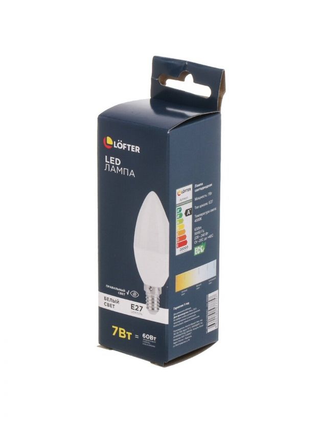 Лампа светодиодная E27, 7 Вт, 60 Вт, 220 В, свеча, 4000 К, нейтральный белый свет, Lofter