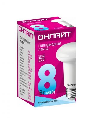 Лампа светодиодная E27, 8 Вт, 60 Вт, рефлектор, 4000 К, нейтральный белый свет, Онлайт, 71654