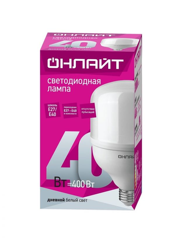 Лампа светодиодная E27-E40, 40 Вт, 400 Вт, цилиндрическая, 6500 К, холодный белый свет, Онлайт, 82903