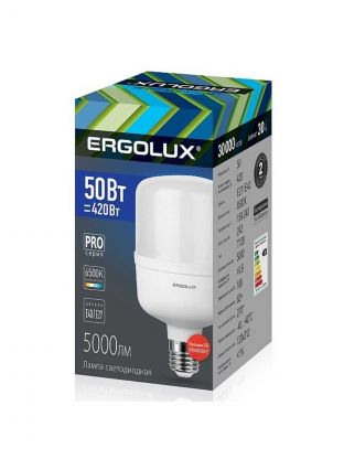 Лампа светодиодная E27-E40, 50 Вт, 420 Вт, 150-240 В, цилиндрическая, 6500 К, холодный белый свет, Ergolux, LED-HW-50 PRO