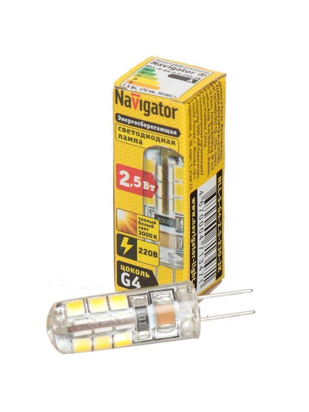 Лампа светодиодная G4, 2.5 Вт, 30 Вт, 220 В, капсула, 3000 К, теплый белый свет, Navigator, 71347