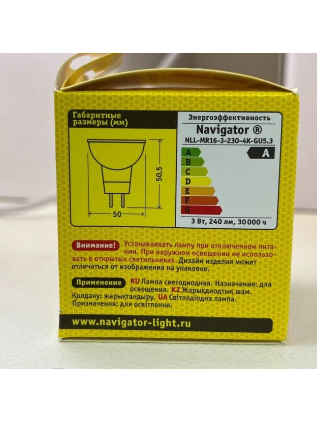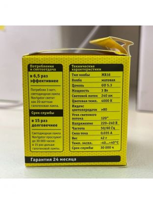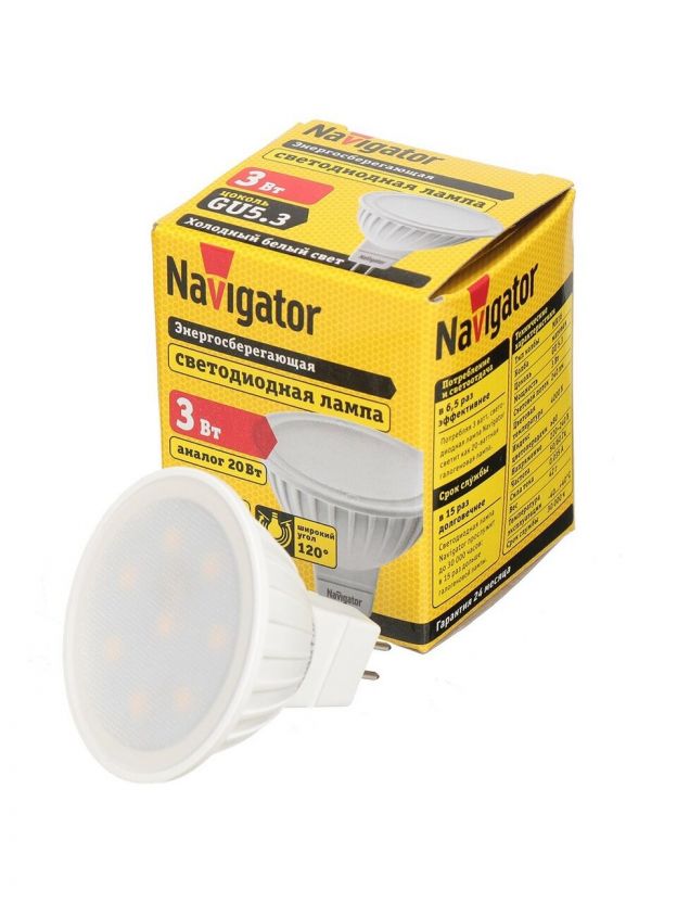 Лампа светодиодная GU5.3, 3 Вт, 20 Вт, 220 В, рефлектор, 4000 К, нейтральный белый свет, Navigator, 94127