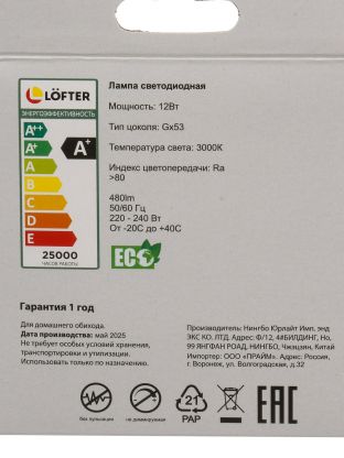 Выберите лампу GX53 12 Вт Lofter — получите тёплый свет, надёжность и ощутимую экономию. Закажите сейчас и воспользуйтесь выгодной ценой с гарантией производителя!