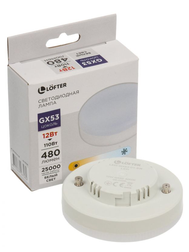 Лампа светодиодная GX53 12 Вт Lofter — экономьте до 80% на электроэнергии при ярком нейтральном свете для дома и потолков.