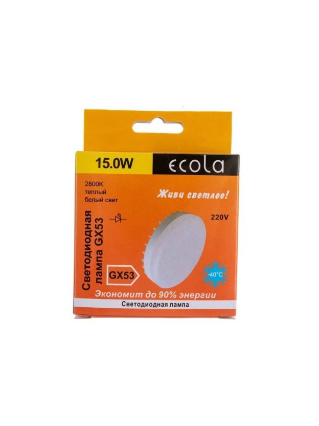 Лампа светодиодная GX53, 15 Вт, 220 В, таблетка, 2800 К, теплый белый свет, Ecola, LED