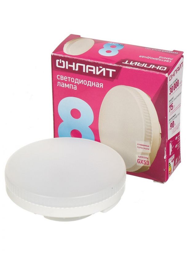 Лампа светодиодная GX53, 8 Вт, 75 Вт, таблетка, 4000 К, нейтральный белый свет, Онлайт, 71639