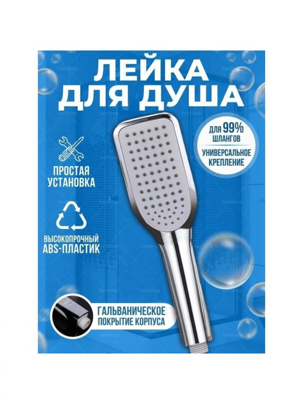 Лейка для душа, пластик, 24.7х6.9х4.9 см, 1 режим, прямоугольная, гальваника, Diadonna, D10-19008