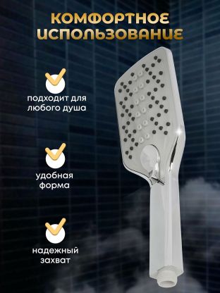 - Душевая лейка имеет удобную форму, которая обеспечивает надежный захват и комфорт при использовании.