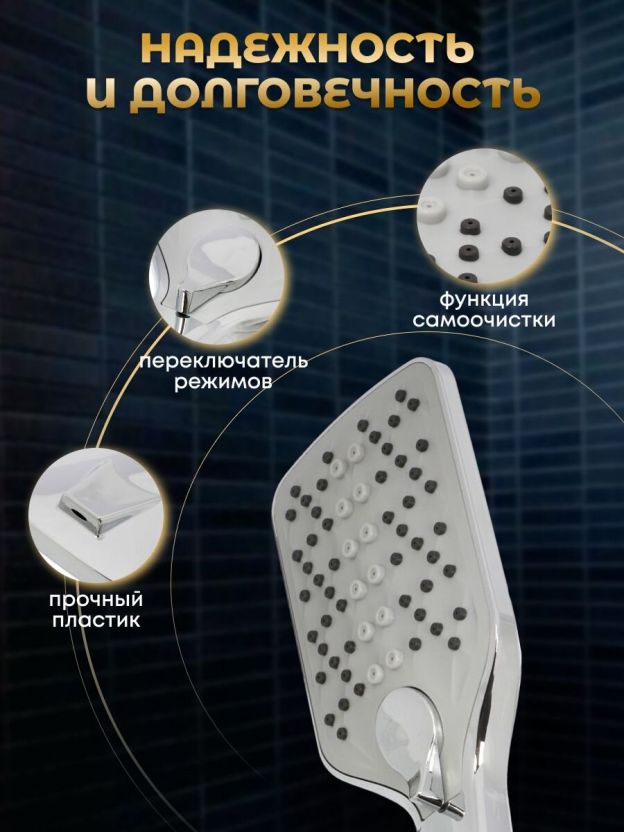 Лейка для душа выдаёт узконаправленный напор из отверстий, благодаря чему не происходит излишнего разбрызгивания, предотвращая распространение капель воды на пол и окружающие предметы, что поможет сохранить ванную комнату сухой и чистой.