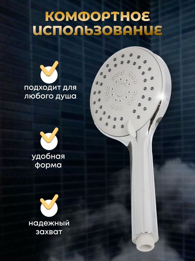 - Душевая лейка имеет удобную форму, которая обеспечивает надежный захват и комфорт при использовании.