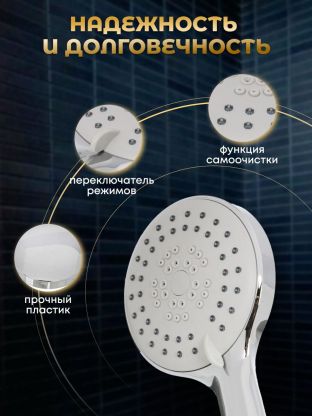 Лейка для душа выдаёт узконаправленный напор из отверстий, благодаря чему не происходит излишнего разбрызгивания, предотвращая распространение капель воды на пол и окружающие предметы, что поможет сохранить ванную комнату сухой и чистой.