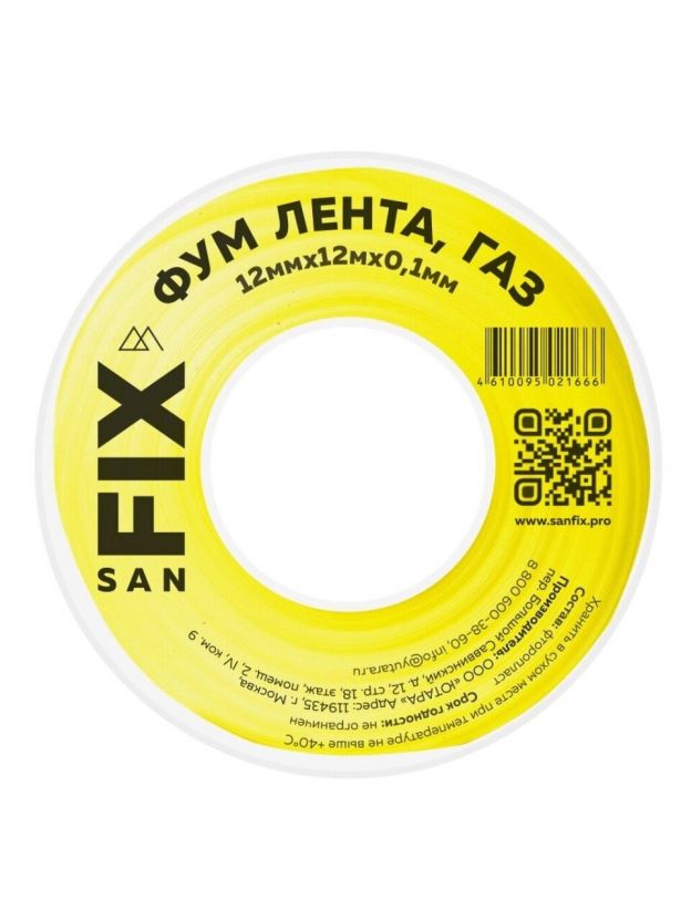 ФУМ лента SANFIX – уплотнительный материал, используемый при необходимости герметизации соединительных элементов с резьбой. Материал выполнен из фторопласта в виде не прилипающей ленты.