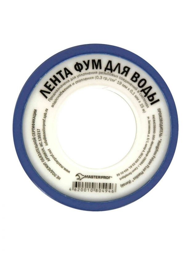 Лента ФУМ для воды, 15 м, большая, белая, MasterProf, индивидуальная упаковка, ИС.130217
