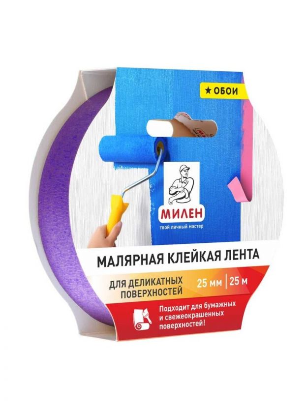 Лента малярная 25х25 м, Милен, для деликат поверхностей, MDP025K