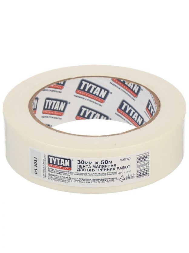 Лента малярная 30 мм, белая, основа бумажная, 50 м, Tytan, 115260