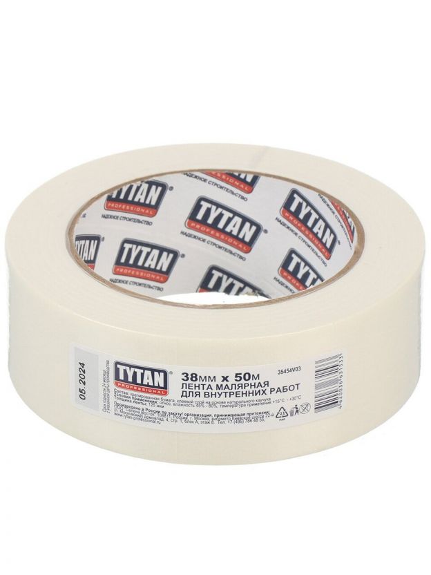 Лента малярная 38 мм, белая, основа бумажная, 50 м, Tytan, 115330