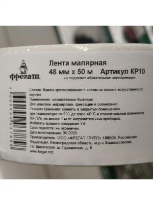 Лента малярная 48 мм, основа бумажная, 40 м, Фрегат, крепированная, КР4840