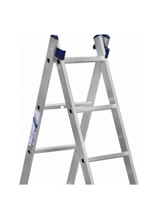 Лестница двухсекционная Алюмет - это универсальная многофункциональная конструкция, предназначенная для бытового или профессионального использования. Универсальность лестницы заключается в том, что она может использоваться как раздвижная приставная лестница и как свободностоящая двухсторонняя стремянка.