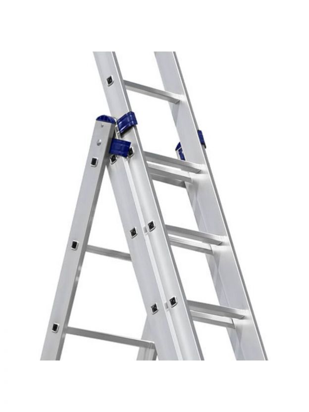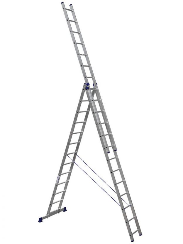 Лестница трехсекционная — это универсальная алюминиевая лестница, которая сочетает в себе сразу функции приставной лестницы, лестницы-стремянки и двухсекционной лестницы. Трехсекционная алюминиевая лестница собрала в себе все преимущества односекционной и двухсекционной лестницы. Данная лестница универсальна, состоит из трех частей и может использоваться в широком диапазоне высот. Имеется возможность использовать верхнюю секцию как отдельную небольшую приставную лестницу.