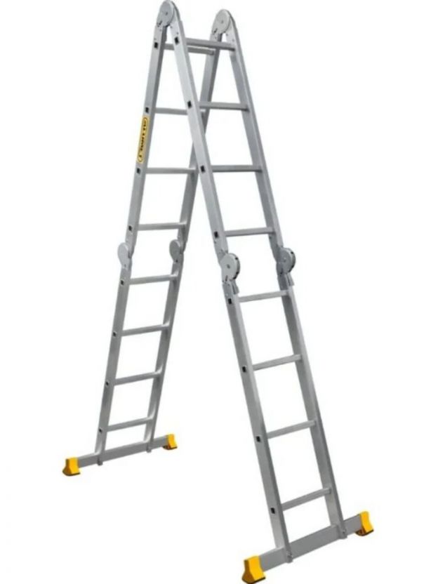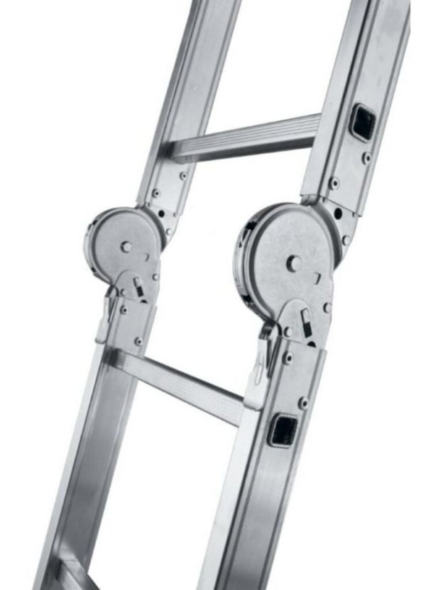 Лестница-трансформер — это шарнирная лестница состоящая из отдельных секций, соединенных между собой шарнирными замками. Каждый шарнир позволяет фиксировать различный угол между секциями. Это позволяет использовать лестницу-трансформер во многих модификациях: приставная лестница, стремянка, помост, консольная лестница и многое другое. Шарнирная лестница может складываться в 4 раза, что придает ей очень компактные размеры. При одинаковой длине в приставном виде шарнирная лестница в сложенном виде будет всегда намного компактней, чем трехсекционная универсальная лестница. Даже самая большая лестница-трансформер влезает в багажник легкового автомобиля.