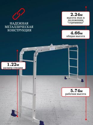 • Высота стремянки: 2.24 м.