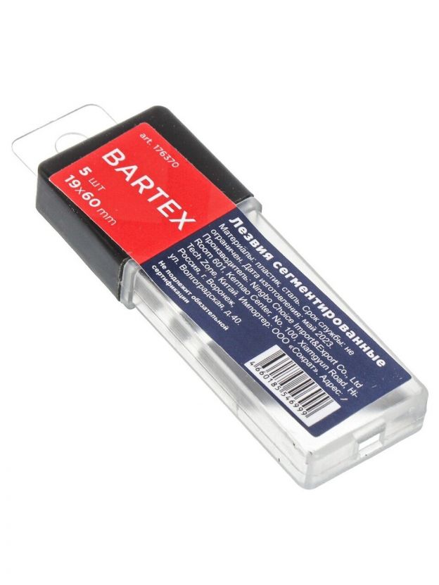 Лезвия сменные 19х60 мм, 5 шт, трапецевидные для пистолетного ножа, Bartex, UK-161/СН-124