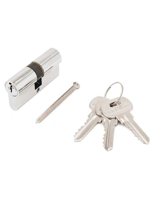 Личинка замка двери Аллюр, A 60-3К CP, 1 256, 60 мм, хром, латунь, 3 ключа