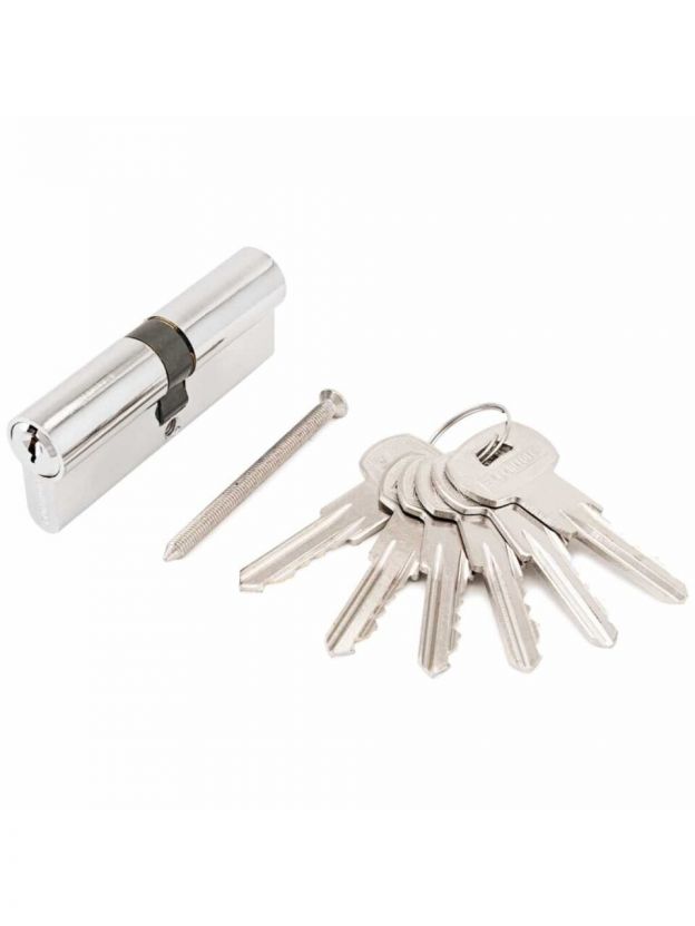 Личинка замка двери Аллюр, A 80-6К CP, 1 262, 80 мм, хром, латунь, 6 ключей