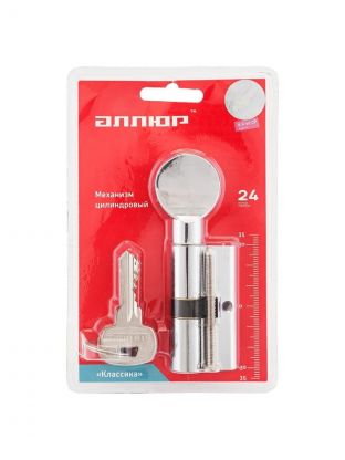 Личинка замка двери Аллюр, A.G 60-6К CP, 979, 60 мм, ключ-вертушка, хром, 5 ключей, блистер