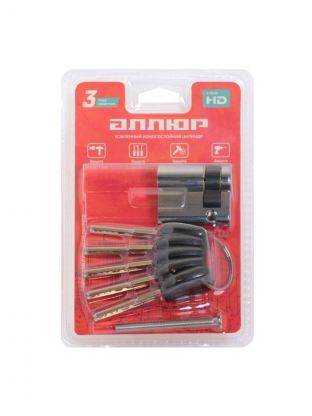 Личинка замка двери Аллюр, HD F 40H-5К CP, 15459, 40 мм, хром, 5 перфоключей, блистер