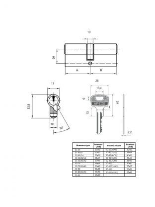 - Цилиндровые механизмы серии SC защищены от высверливания стальными штифтами высокой твердости. Один штифт в расположен в корпусе цилиндра и два штифта – в сердечнике цилиндрового механизма.