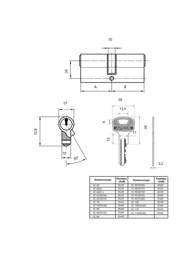 - Цилиндровые механизмы Apecs серии SC - одни из немногих существующих на рынке России цилиндров, которые прошли испытания и сертификацию в России. Серия SM предназначена для установки во входные двери и обеспечивает уровень защиты, соответствующий 2 классу (из 4 возможных) по российскому ГОСТу.
