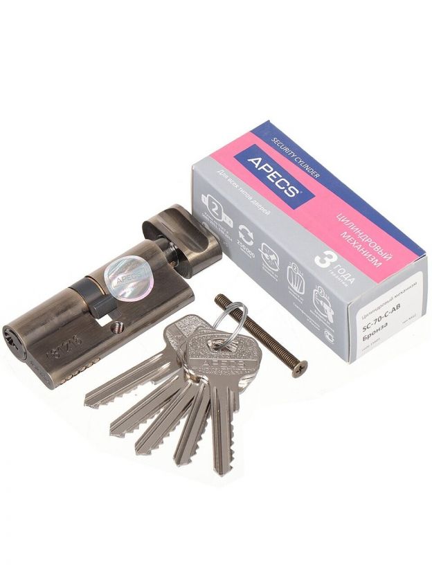 Личинка замка двери Apecs, SC-70-C-AB (SC-70-Z-C-AB), 15603, 70 мм, бронза, 35/35